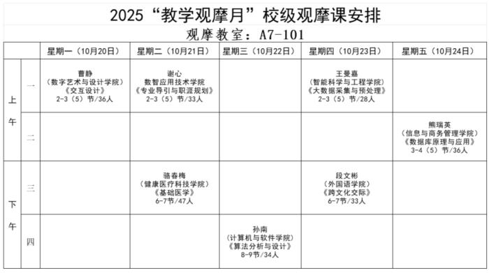 活动期间,结合各教学单位报送的优秀教学示范观摩课,教务部共遴选了来自校内7个教学单位的7门(专业)课程组成“教学观摩月”校级观摩活动,并于10月20日至10月24日通过“线上直播+线下听课”方式供全校教师观摩学习。校级观摩期间,累计吸引参与教师700余人次,整体氛围浓厚,反响热烈,充分展现了我校教师积极进取、互学共进的良好风貌。
