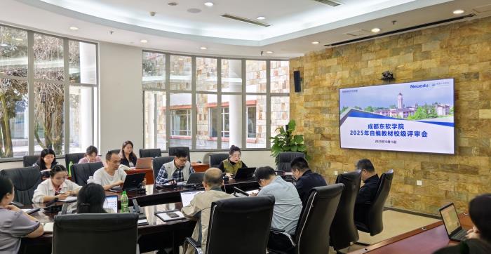 10月15日,成都东软学院2025年自编教材校级评审会在A2-115会议室召开。会议由学校教务部部长林敏主持,10本自编教材主编和学校教材评审专家、学校教材建设委员会委员等相关人员参加。
