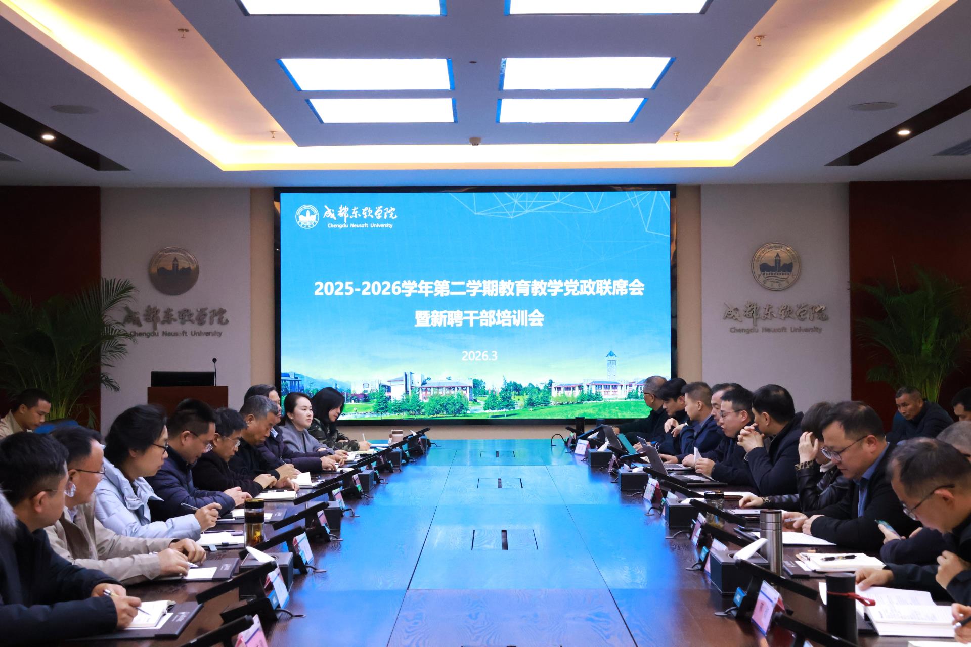2026年3月,成都东软学院召开了2025-2026学年第二学期教育教学党政联席会暨新聘干部培训会,校领导,各职能部门负责人,各二级学院院长、书记及全体副院长参会,明确新学期教育教学工作要求,部署干部队伍建设相关任务。